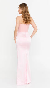 Chic maxi-length dress designed with a distinctive corset silhouette, balancing structure and elegance for a refined modern look.
